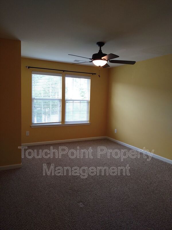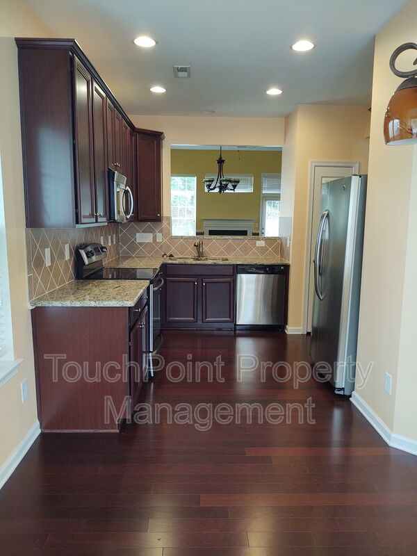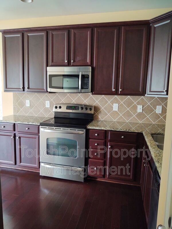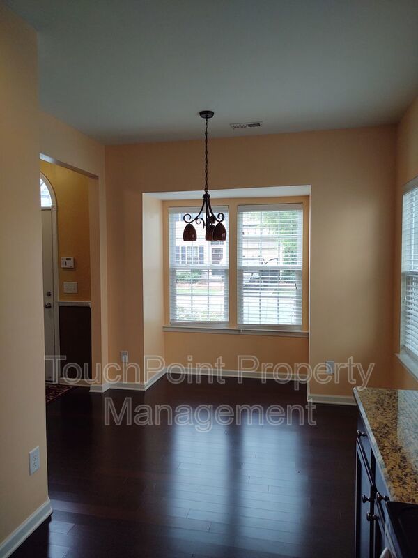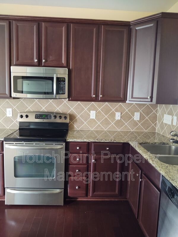 This spacious 3 bedroom, 2.5 bath end unit townhome is in a gated community and features granite countertops and stainless steel appliances, an eat in kitchen and hardwood flooring throughout the main level. Master bedroom is on main level with full bath and walk in closet and includes a beautiful tray ceiling , master bath includes dual sinks and a gorgeous tiled garden tub. Second level includes 2 bedrooms and a loft that overlooks the great room and fireplace on main level. 1 Car Garage. Walk to nearby community amenities which includes an oversized pool. One small dog 40 lbs and under will be considered, no aggressive breeds with a non refundable pet fee. Pet fee will be determined via the outcome of the pet screening process. This is a Zero Security Deposit property for qualified renters. Please ask us about this option when being approved for this property. We will be happy to send you details about this program.